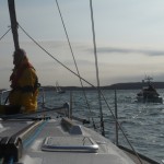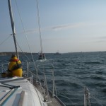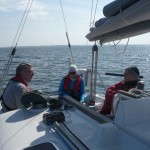 Die Wettervorhersage sagt E-SE 3-4 Bft. Der am Tag vorher angekündigte Regen wurde nicht mehr vorhergesagt. Es sollte ein angenehmer letzter Segeltag werden. Schauen wir, was daraus geworden ist. Ablegen um 12:30 Uhr ohne Probleme. Ein Segler davor ist mit Marschmusik ausgelaufen, wir machen das etwas dezenter. Die Zuschauergemeinde langweilt sich eher ob unseres Ablegemanövers. Ist wohl nicht spektakulär genug… Wir fahren aus dem Hafen raus und setzen die Segel. Das vorher eingelegte Reff nehmen wir direkt heraus, da der Wind nicht so stark ist, wie angekündigt. Ich nehme den Hafengang heraus, da wir nun Vortrieb durch die Segel haben und denke noch, was knattert da so komisch im Motor. Ich gebe Gas und das Geräusch ist weg. Ich denke mir nichts weiter und schalte den Motor aus. So segeln wir eine Stunde, bis der Wind einschläft.