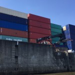 So fahren wir ein wenig den Hafen erkunden, mal hierin, mal dorthin, bis wir 13:45 Uhr uns mit den anderen Sportbooten vor der Freihafenelbbrücke auf der Norderelbe treffen. Wir haben strenge 5 Bft Starkwind. Eigentlich sollen alle Segelboote die Großsegel hissen und mitschiffs festzurren, um ein schönes Bild abzugeben, aber nicht alle stressen das Material und fahren auf Sicherheit für die Crew. Wir lassen auch die Segel unten, denn die Sicherheit der Crew geht vor.
