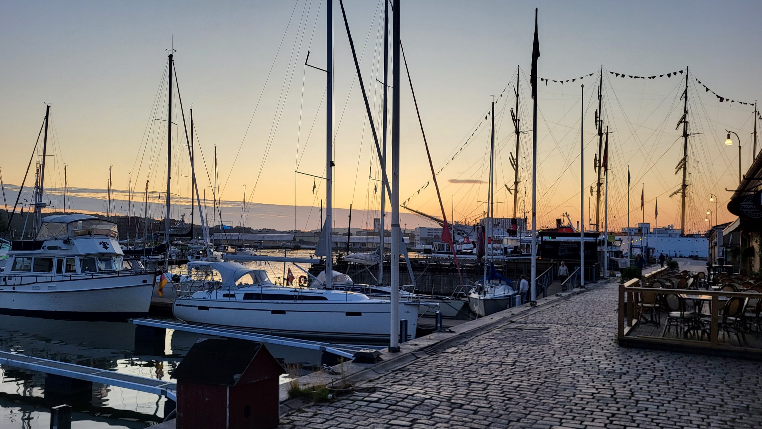 Das Ziel Bergen hat eine Regenwahrscheinlichkeit ganzjährig von mehr als 50%. Während vor ein paar Tagen noch Regen gemeldet war, haben wir in Göteborg blauen Himmel und erwarten eine sonnige Überfahrt Richtung Norwegen.