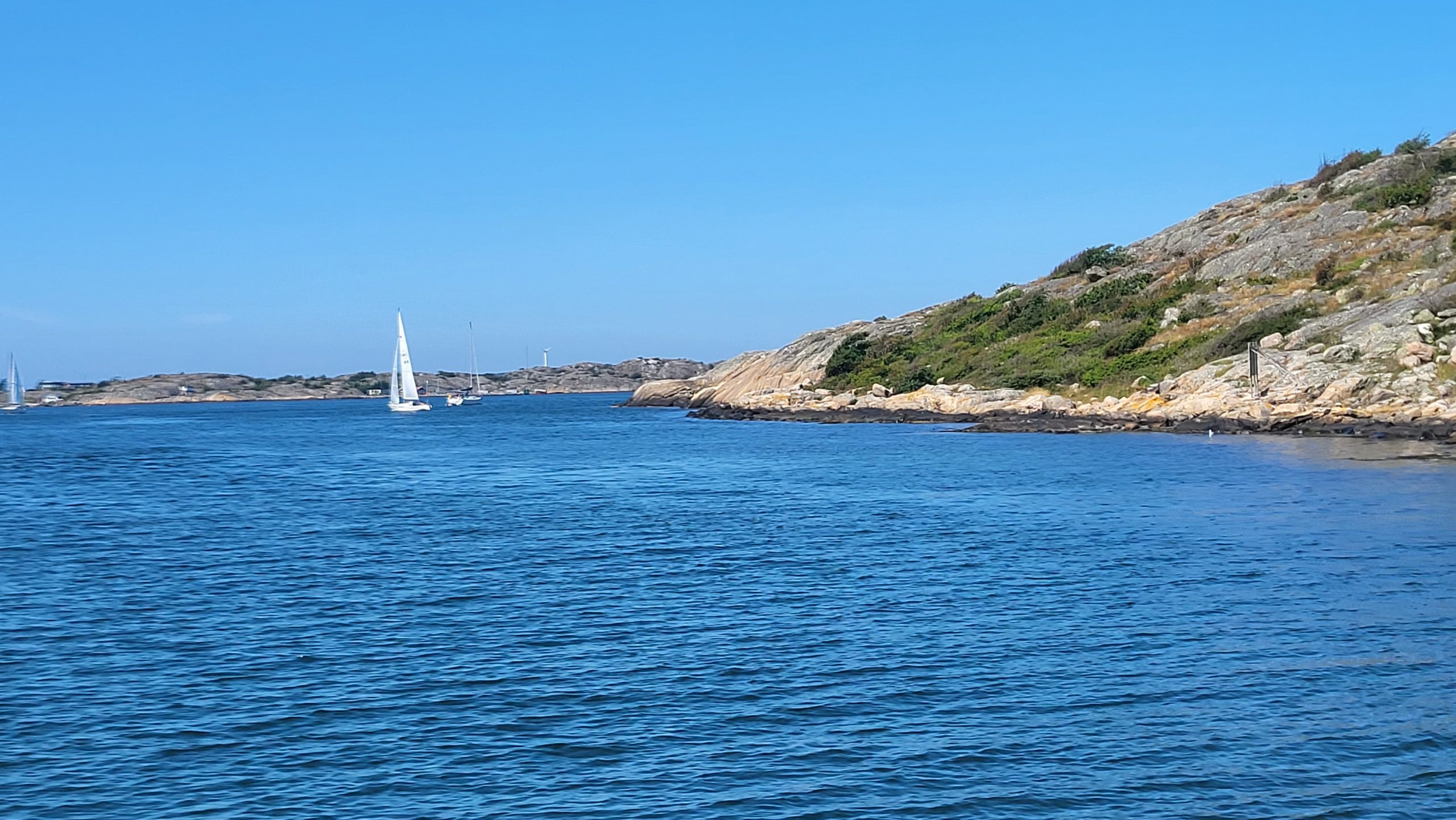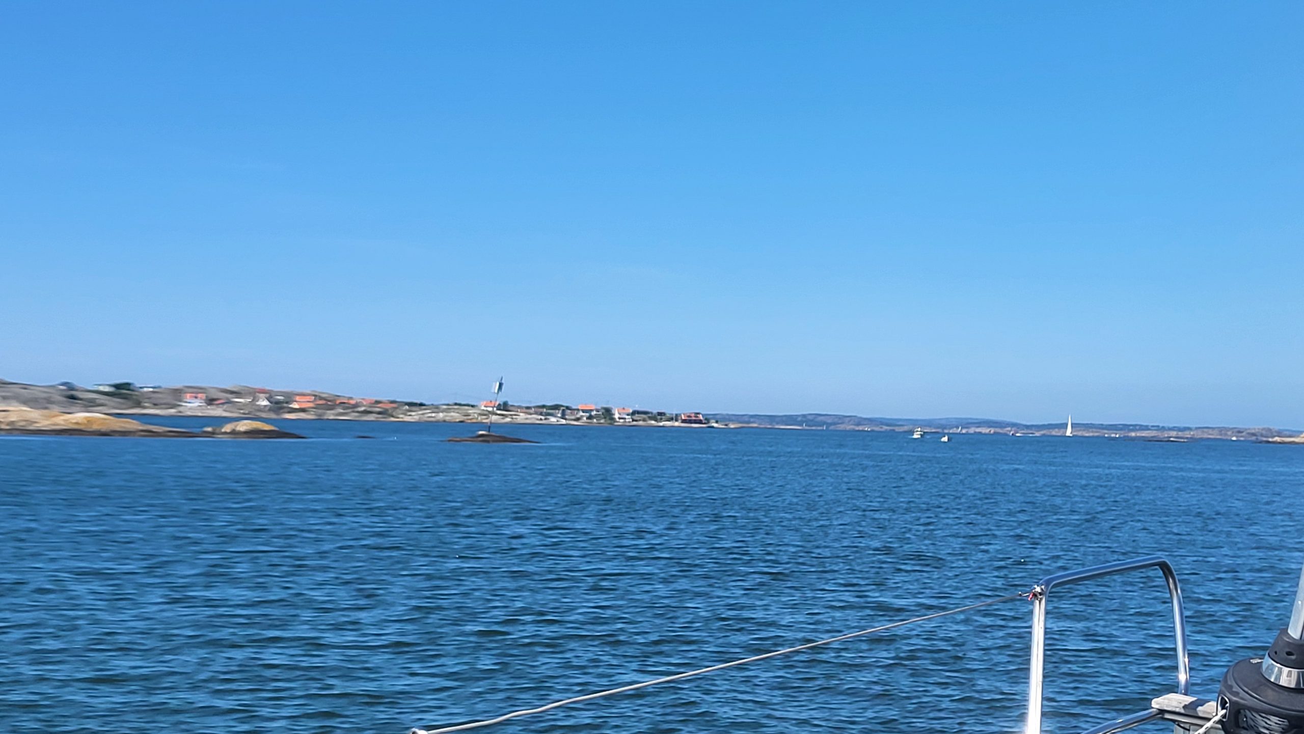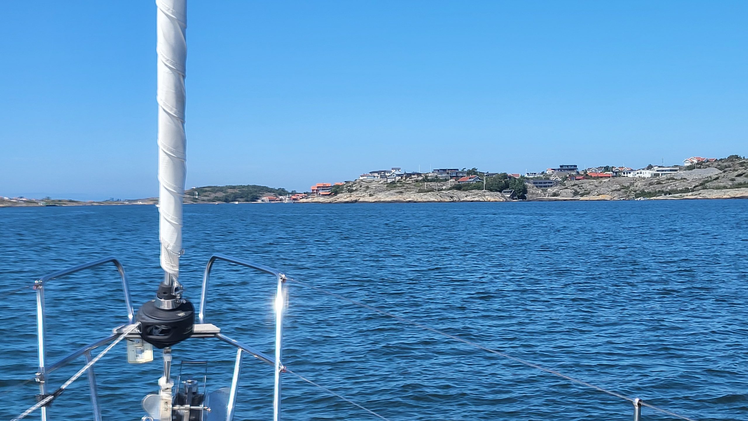 Ich kann das gar nicht wirklich in Worte fassen. Es ist unfassbar schön. Rechts und links die Felsen und wir segeln zwischen den Felsen mit Häuschen, Booten oder auch nur Seezeichen hindurch. Navigatorisch ist das schon sehr anspruchsvoll, da die vielen Inselchen ineinander vor dem Auge verschwimmen.
