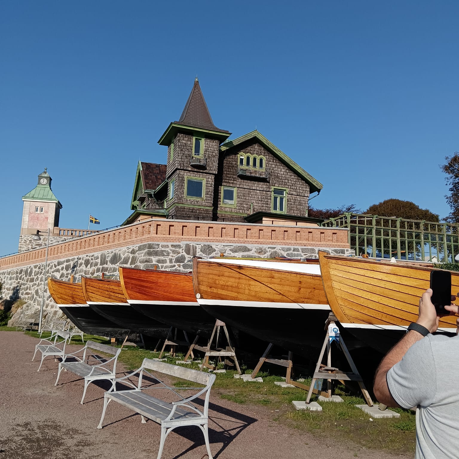 Marstrand ist ein Hotspot für die Göteborger. Alles, was bei drei nicht im Boot sitzen kann, fährt bei schönen Wetter hierhin und geht mit der Familie oder Freunden Essen oder verbringt einfach den Nachmittag auf der Insel.